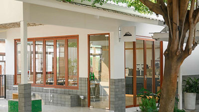 EnviroBoard และ Eco Block เป็นวัสดุใหม่ที่ได้จากการนำเศษพลาสติกและอะลูมิเนียม (polyAl) จากกล่องบรรจุภัณฑ์อาหารและเครื่องดื่มมาแปรรูปและอัดขึ้นใหม่เป็นเม็ดคอมโพสิตที่มีความแข็งแรงและทนทาน นำมาใช้เป็นองค์ประกอบในการตกแต่งที่สะท้อนเอกลักษณ์เฉพาะของคาเฟ่ EarlyBKK ที่ต้องการให้คาเฟ่นี้เป็นต้นแบบของการ ‘ลดก่อนเริ่ม’ หรือการนำสิ่งที่มีอยู่ก่อนมาใช้งานให้เกิดประโยชน์สูงสุดแทนที่จะต้องใช้สิ่งใหม่ และการ Upcycling วัสดุเหลือใช้ ผ่านการนำกล่องบรรจุภัณฑ์อาหารและเครื่องดื่มที่รีไซเคิลแล้วมาแปรรูปเป็นองค์ประกอบการออกแบบที่โดดเด่นภายในร้านทั้ง ผนัง เพดาน และเฟอร์นิเจอร์เฉพาะตัวที่กลายเป็นเอกลักษณ์ของคาเฟ่แห่งนี้
