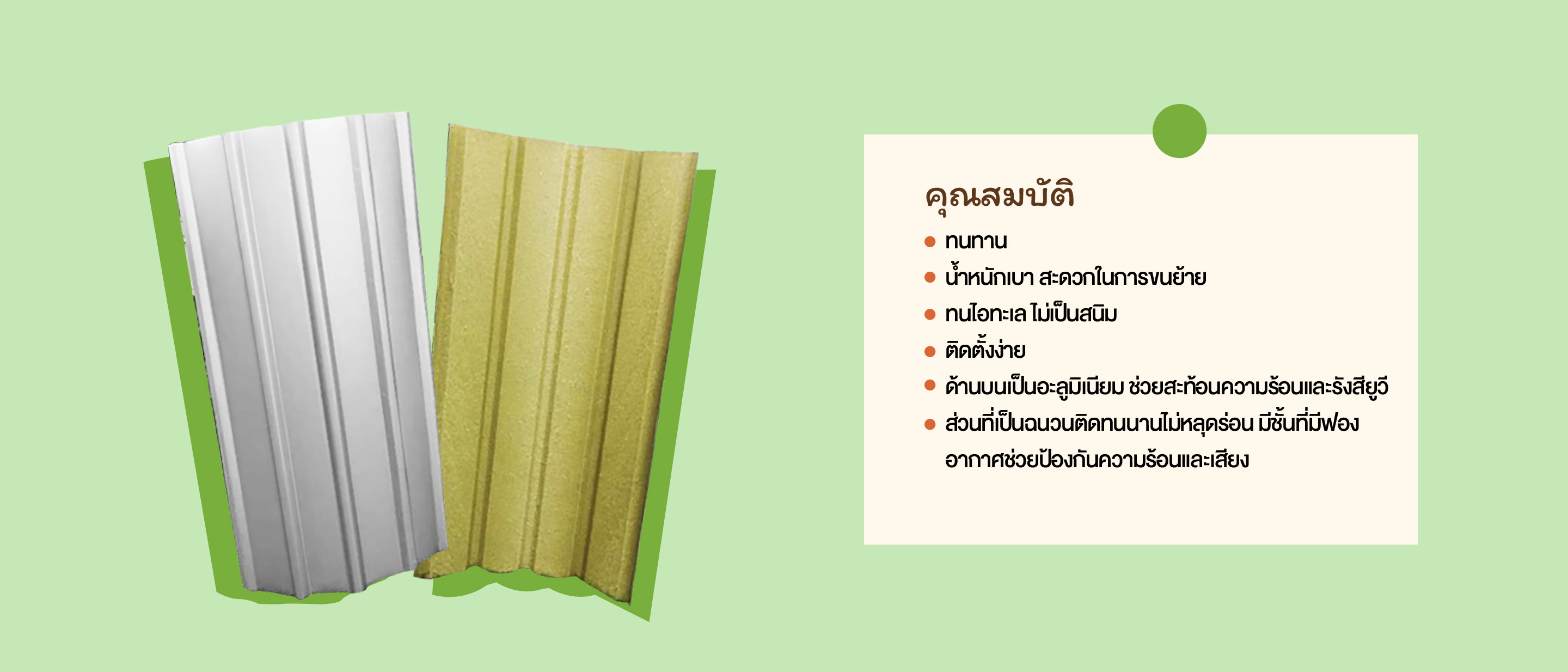 2. แผ่นหลังคาที่ผลิตจากกล่องเครื่องดื่มรีไซเคิล ผสมกับอะลูมิเนียม
