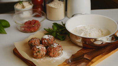 Forma albóndigas del tamaño de una pelota de golf y pásalas por harina.