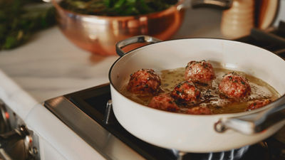 Fríe las albóndigas en una sartén a fuego medio hasta que estén doradas. Colócalas en papel absorbente para eliminar el exceso de aceite.