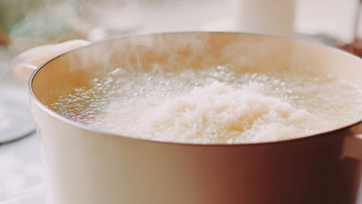 En una sartén con aceite de oliva caliente, añade el arroz y rehógalo un minuto. Cubre con agua (doble de agua que de arroz), sazona y cocina a fuego medio.