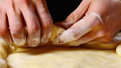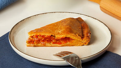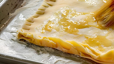 Se pinta la empanada con huevo batido para un acabado dorado y crujiente.