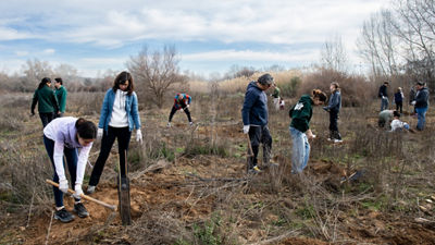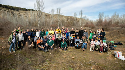En febrero de 2024 volvimos a unirnos en una jornada de plantación en el Soto de las Juntas en la que conseguimos batir el récord de plantación del pasado año. La actividad consistió en una reposición de marras y entre las más de 150 especies plantadas, se encontraban algunas como el álamo, el chopo, la retama o la cornicabra.