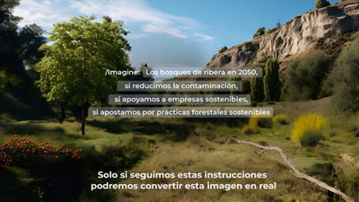 Con la ayuda de la IA, conseguimos reproducir un entorno natural lo más fiel posible a la realidad, mostrando como sería esta zona si seguimos implementando medidas de reforestación y cuidado de la biodiversidad.