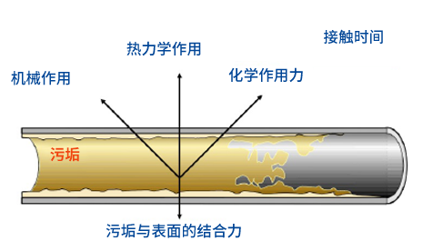 CIP清洗是通过化学力、机械力共同作用,在温度和保持时间的协同下,对表面污垢进行去除并达到预期洁净要求的过程。
