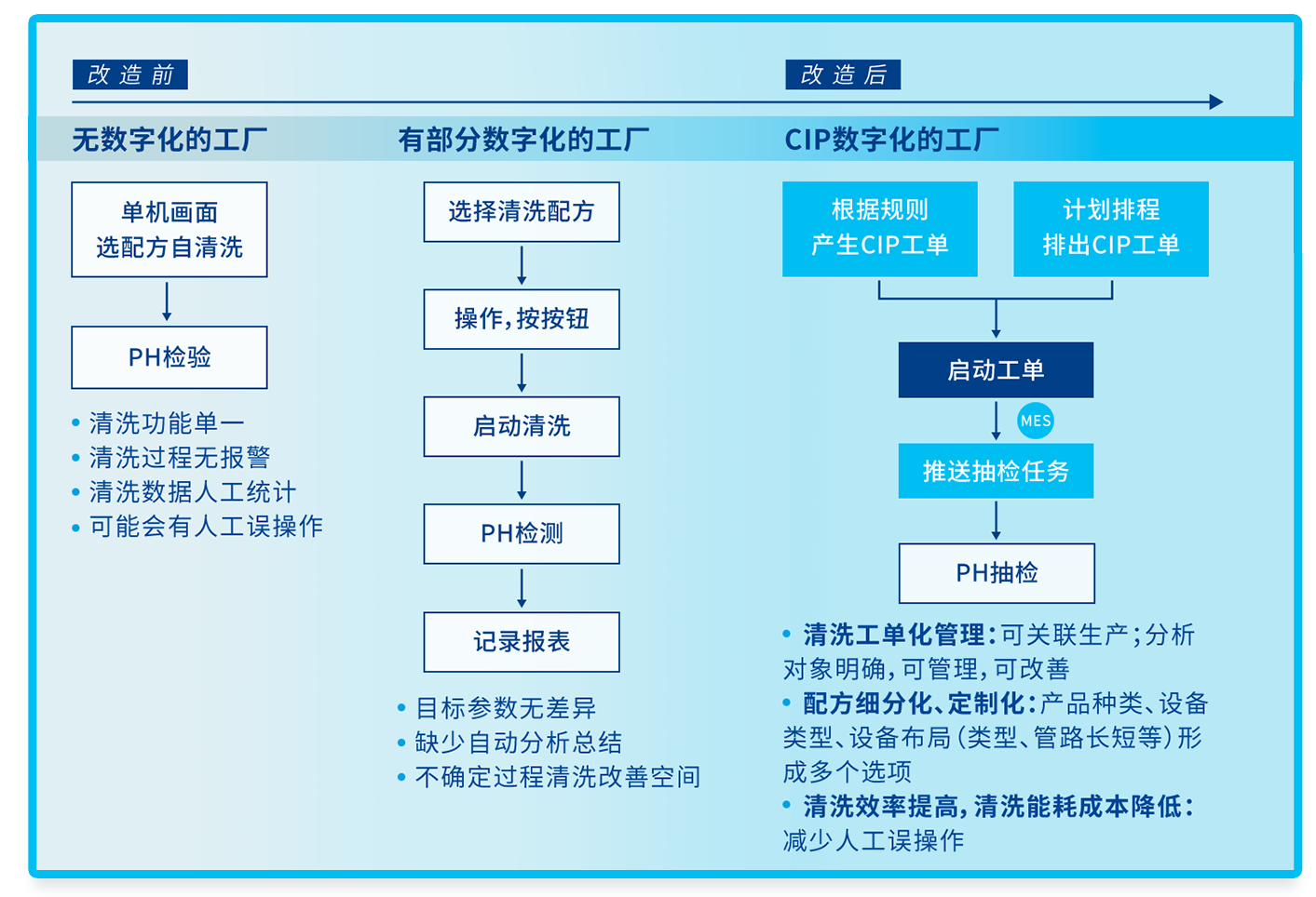 通过数字化改造,CIP清洗过程可实现从“人工经验驱动”向“数据与规则驱动”的转变,核心功能包括: