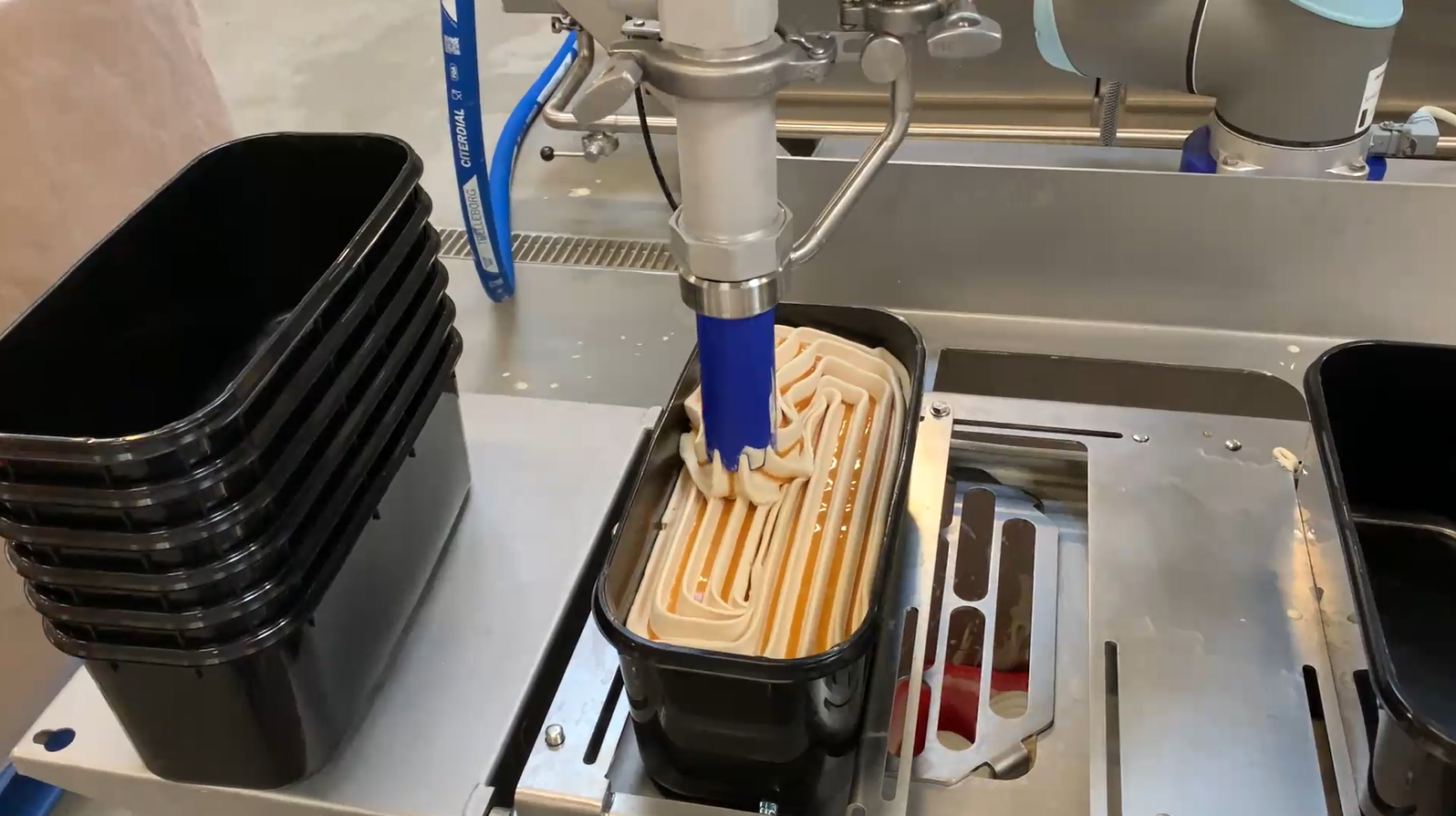 解决痛点:餐饮渠道的盒装冰淇淋,手动灌装劳动强度大,效率有限,花型不统一。